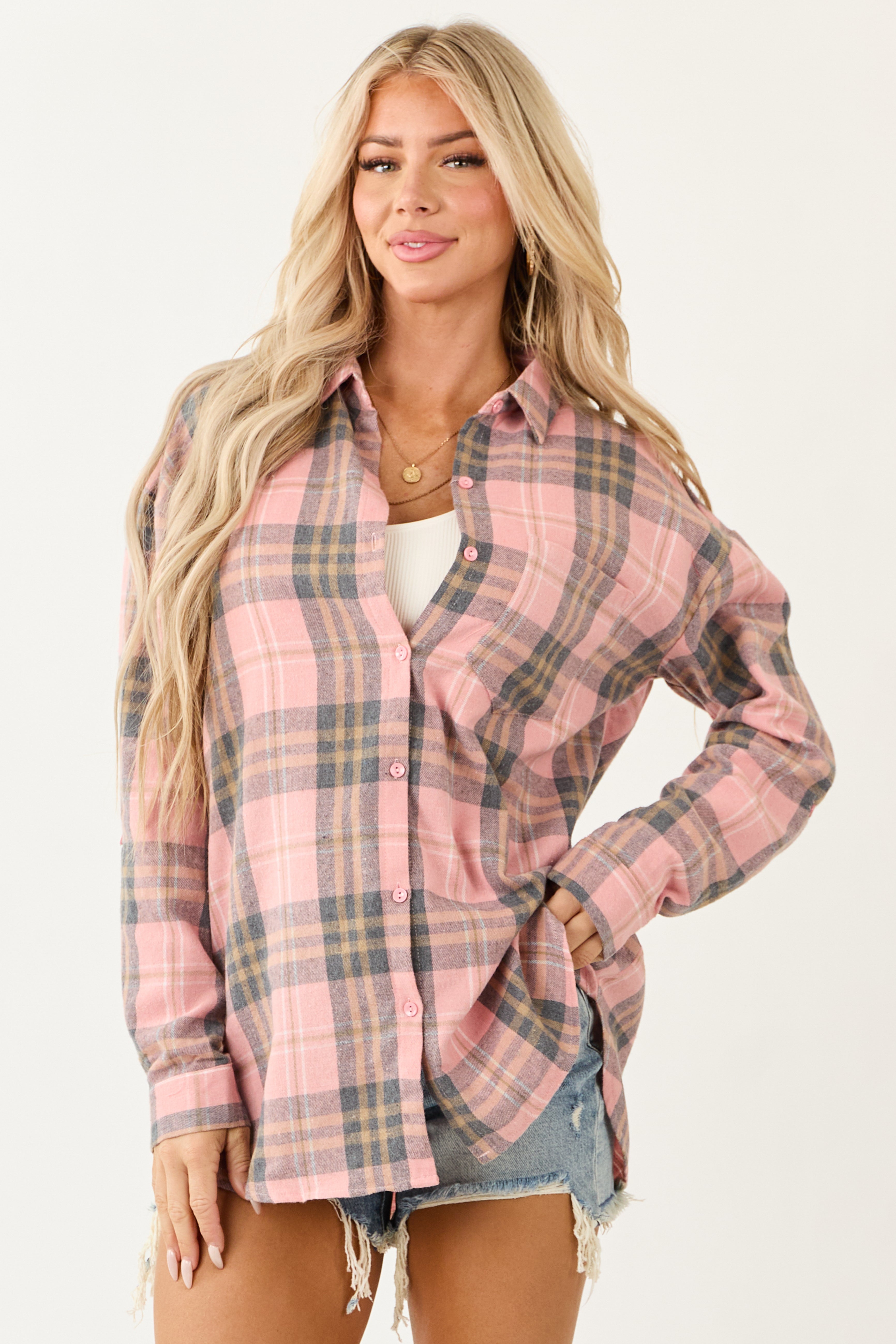 Faded Punch Plaid Flannel Long Sleeve Button Up...