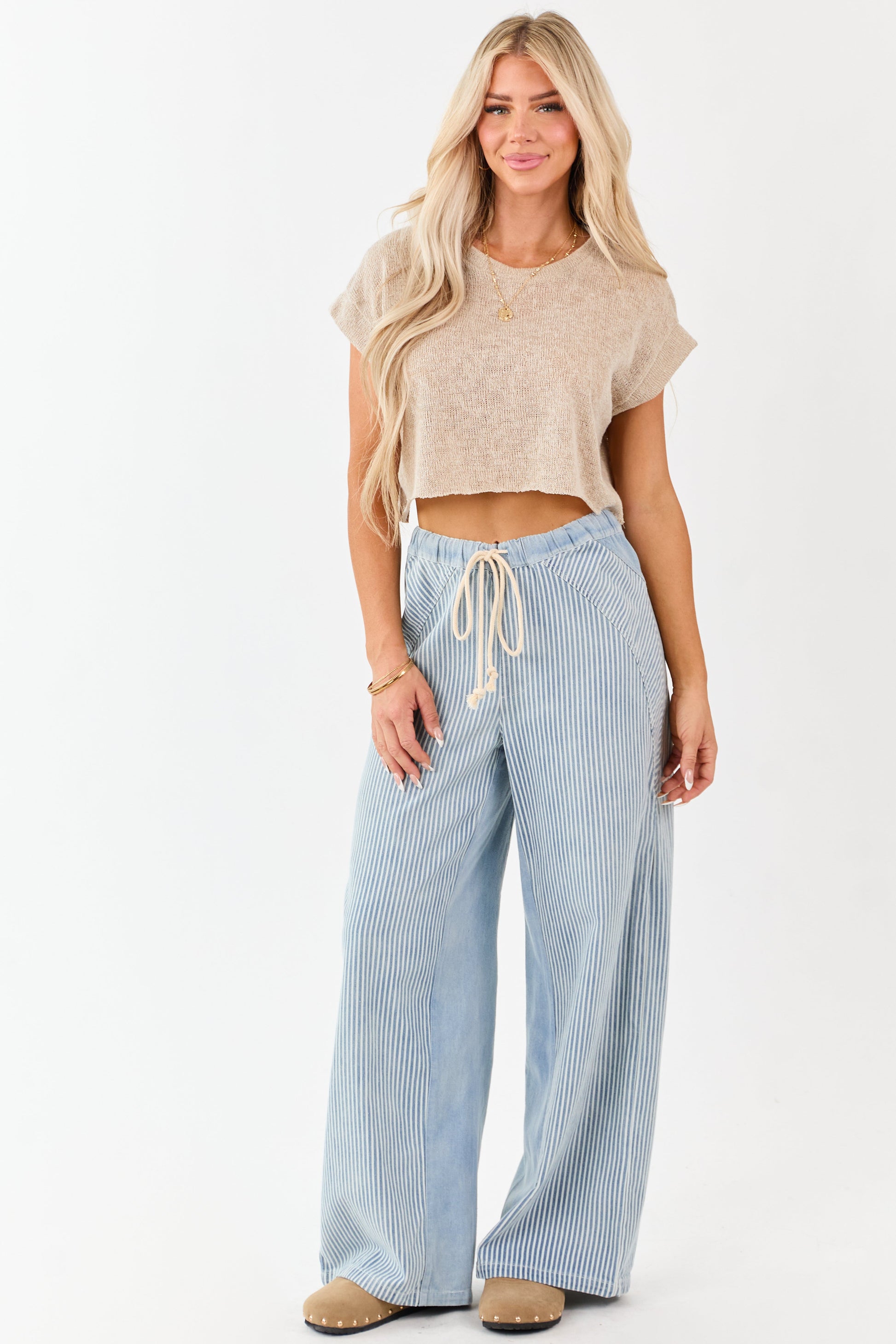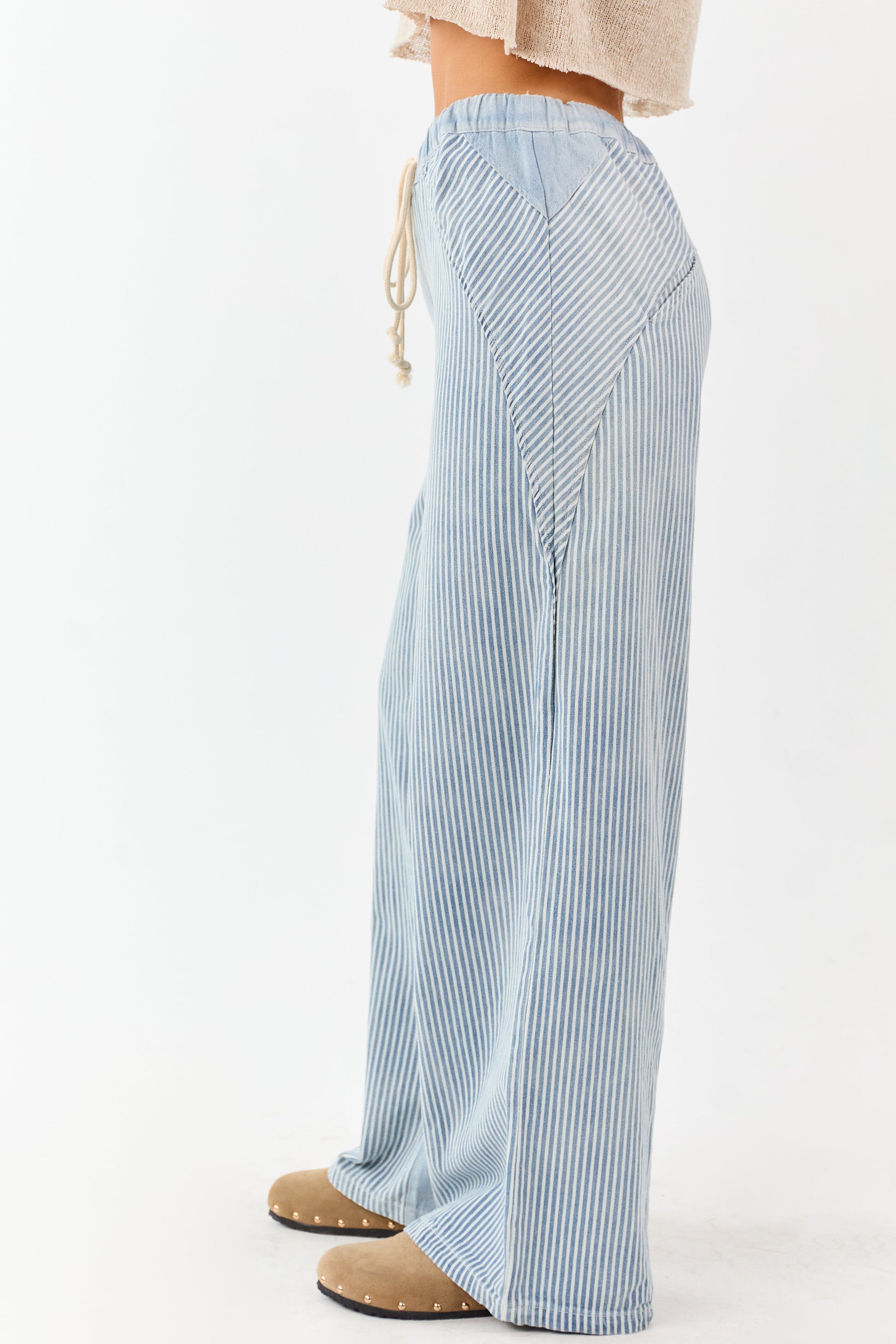 Light Wash Railroad Stripe Wide Leg Denim Pants