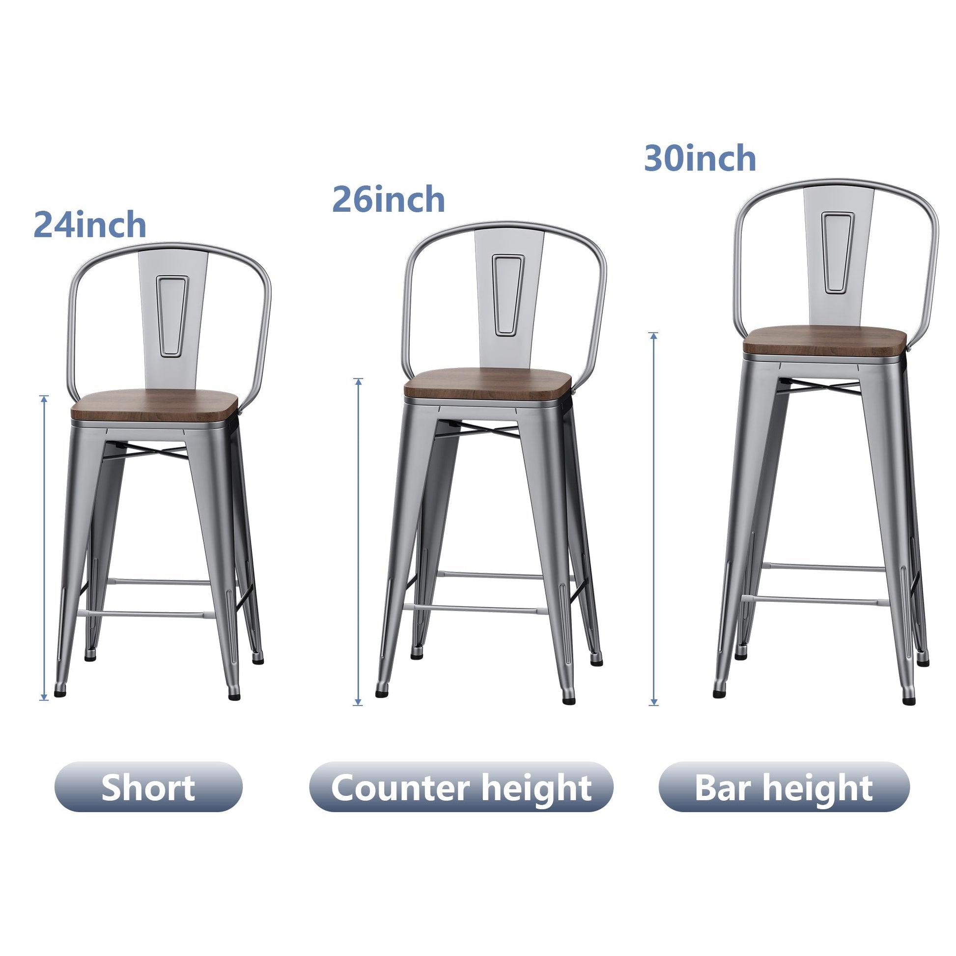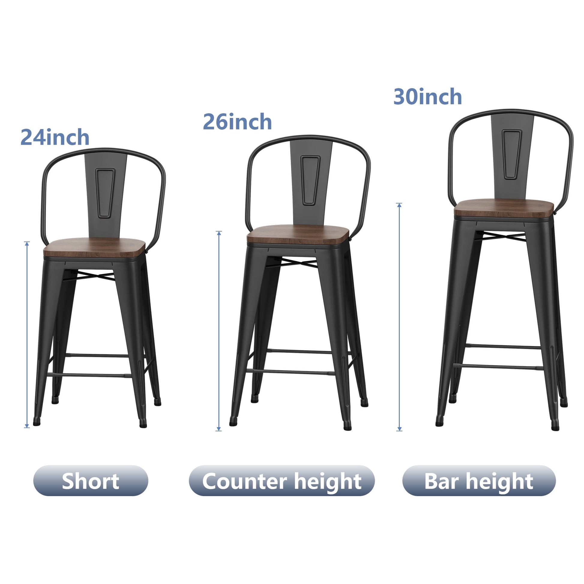 Introduce rustic charm to your home or restaurant with the Andeworld Farmhouse Bar Stools. Available in three different sizes, these stools have a large seat that accommodates most individuals. Built with high-quality steel frames and cross-brace support, these stools can hold up to 350 lbs. The removable backrest makes it easy to stack them for storage when not in use. These stools are perfect for outdoor use when protected by a sunshade. With a chic industrial style and scratch-resistant performance, these stools are easy to assemble and clean.