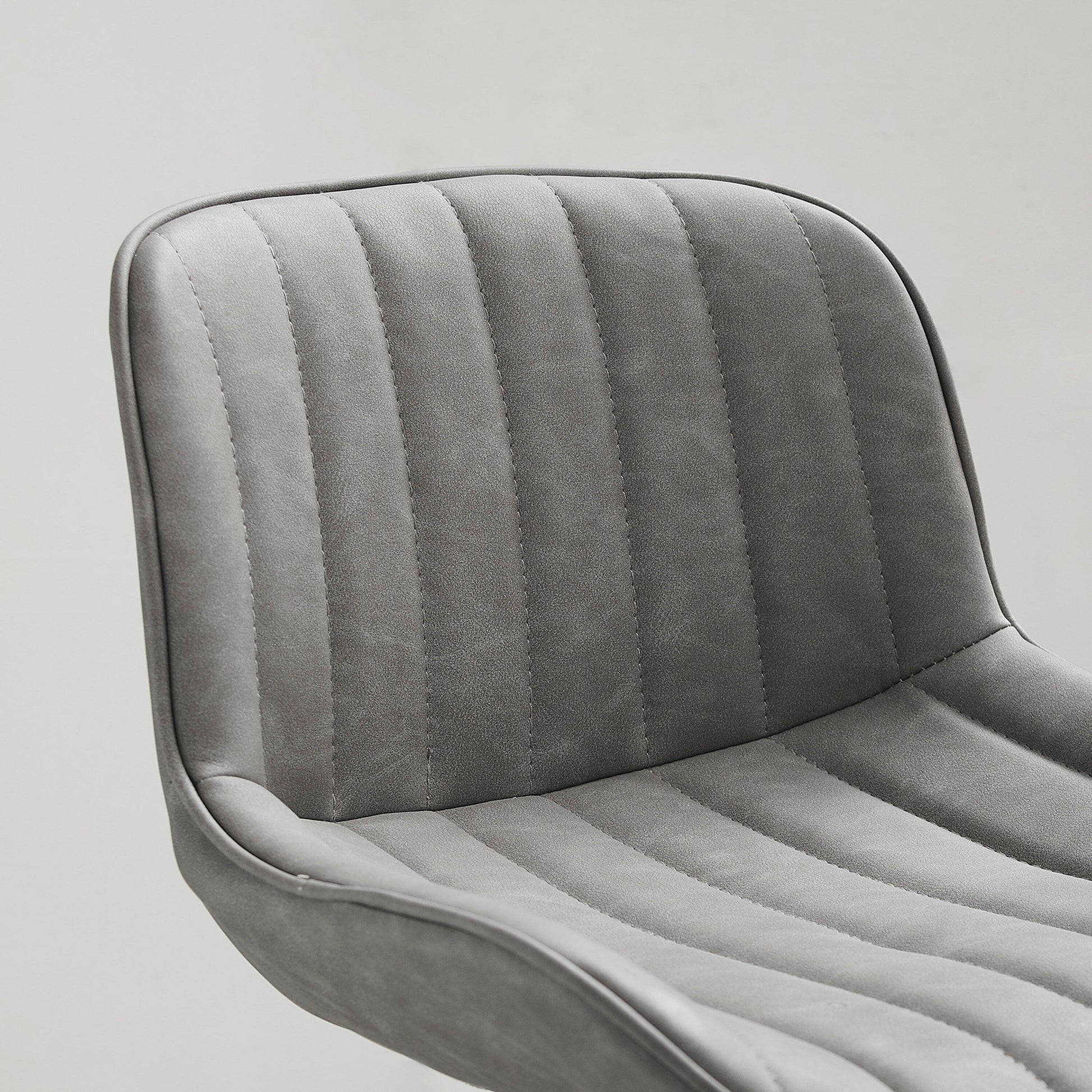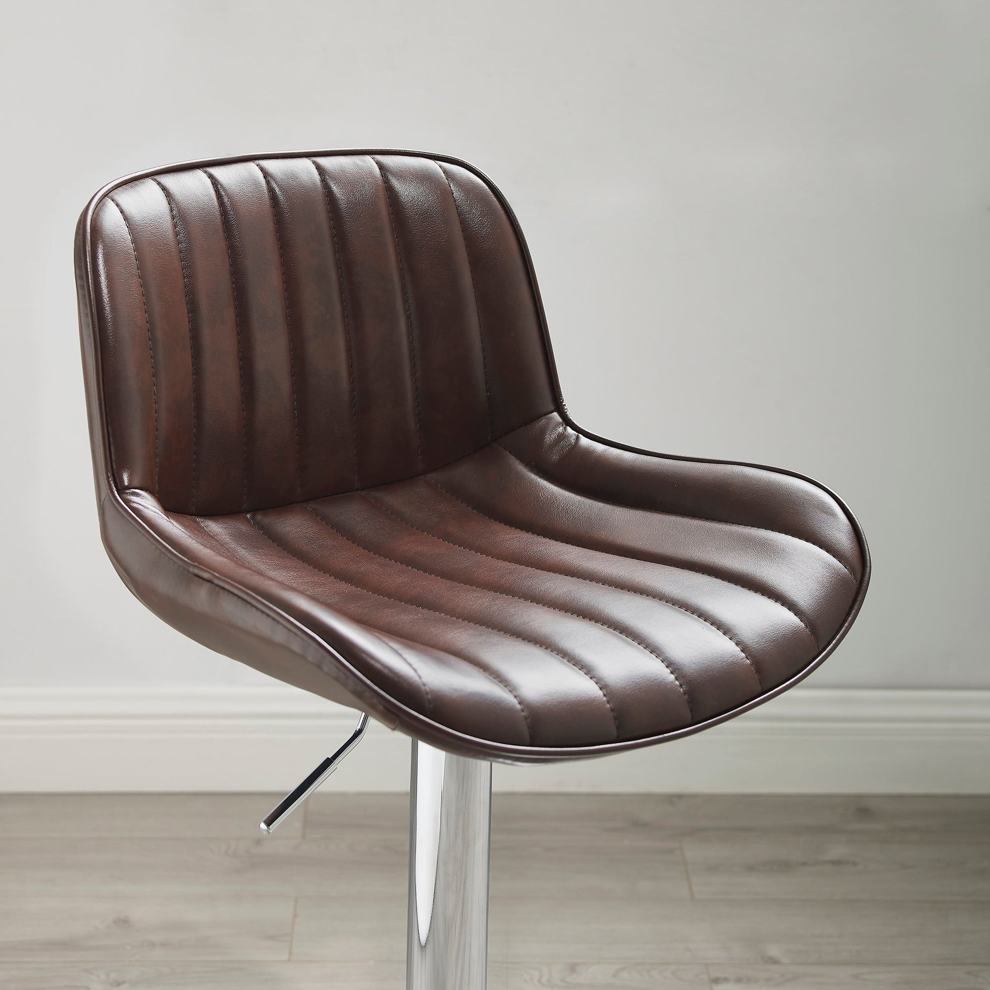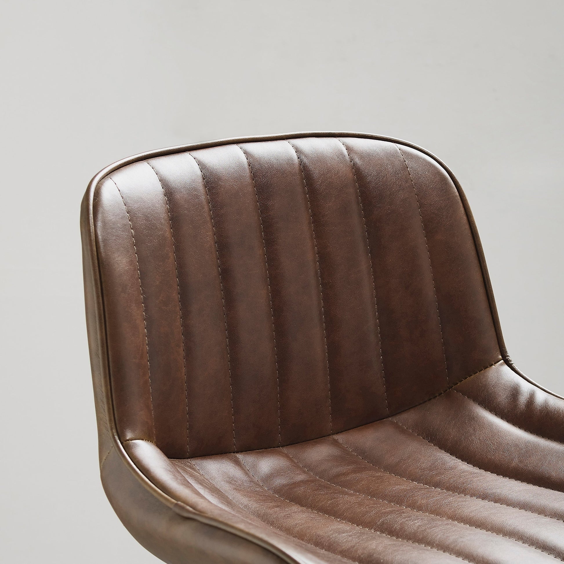 • Contoured faux leather seat with classic striated quilting