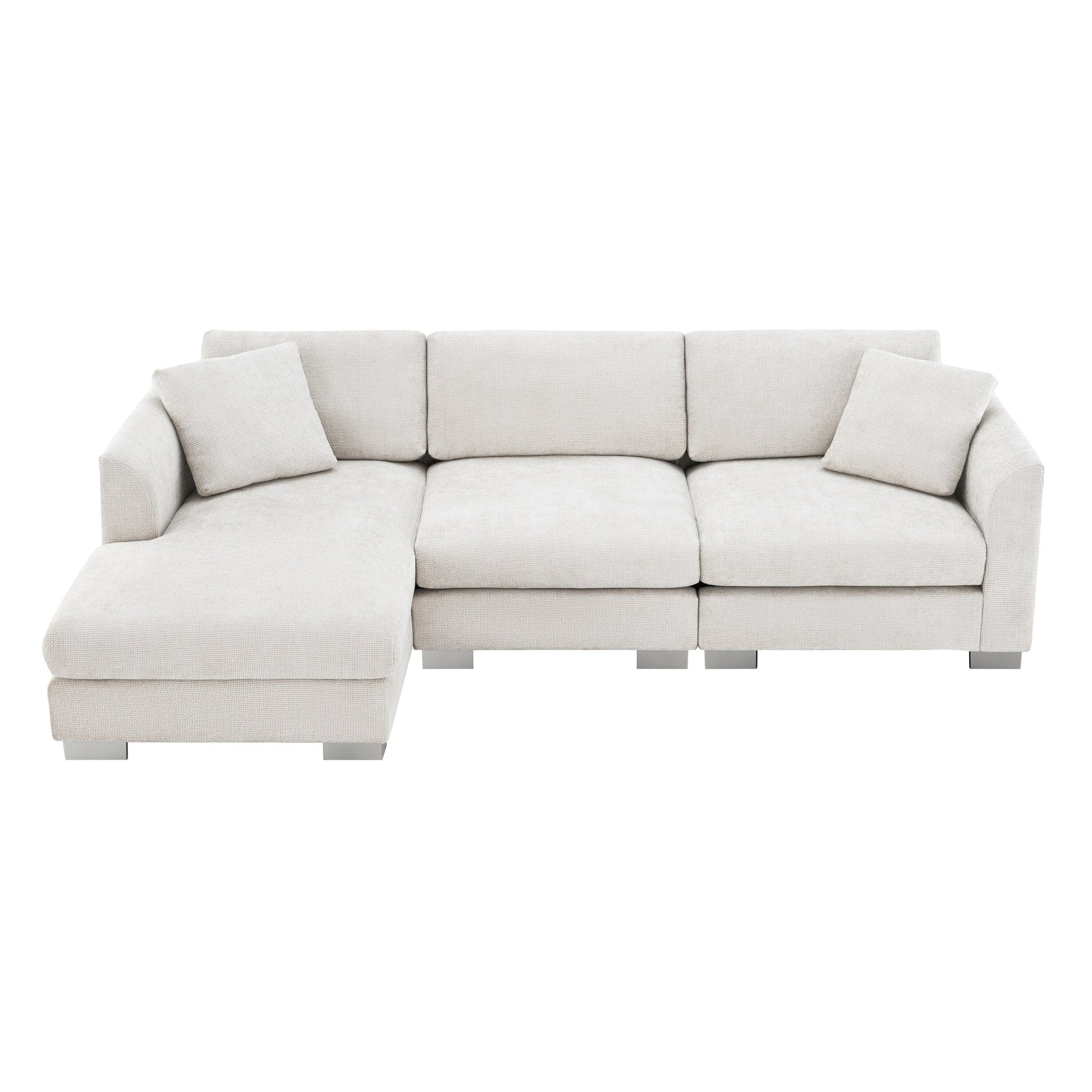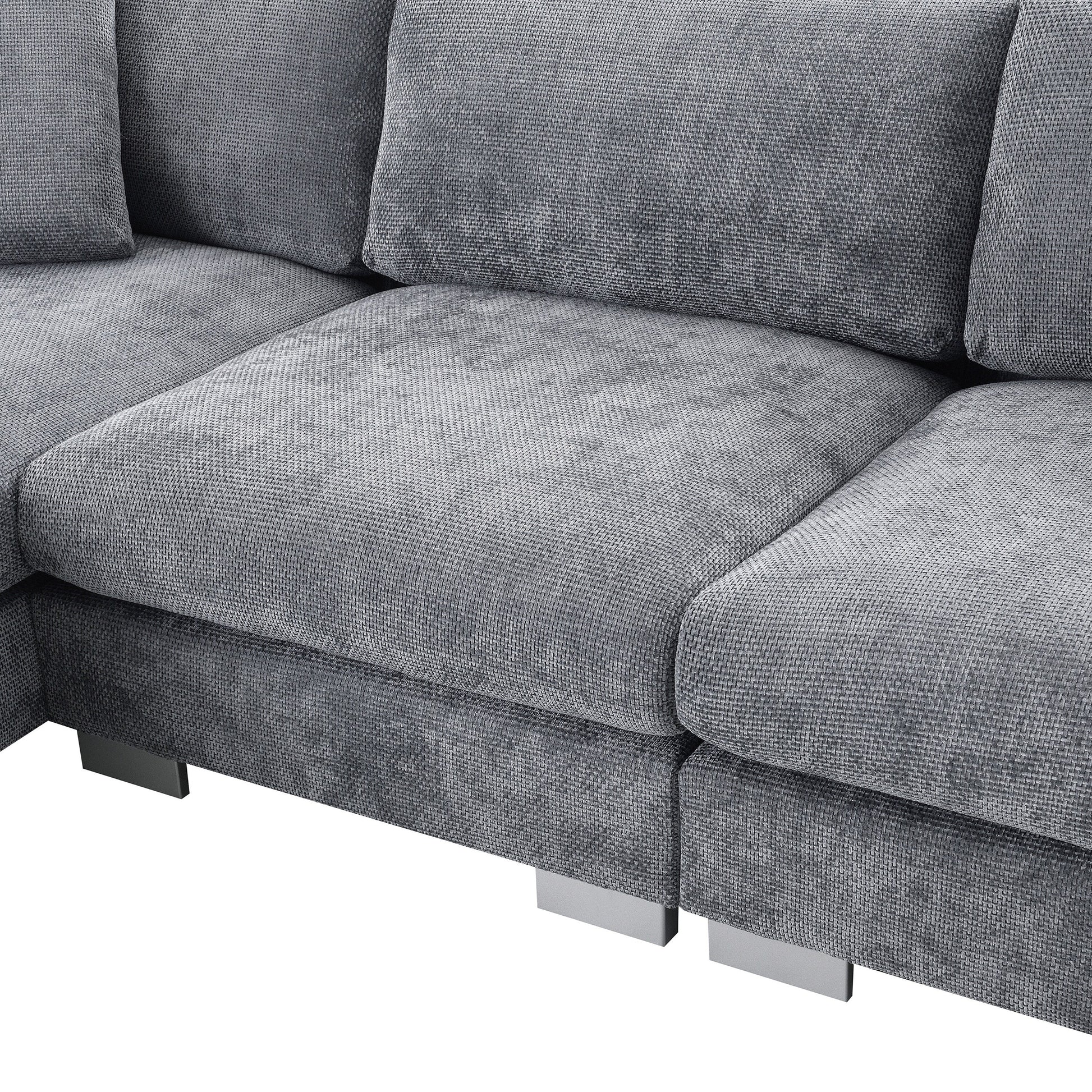 Cloud Sectional Sofa,L-Shaped Luxury Couch Set With 2 Free Pillows,4-Seat Chenille Indoor Furniture With Oversized Chaise