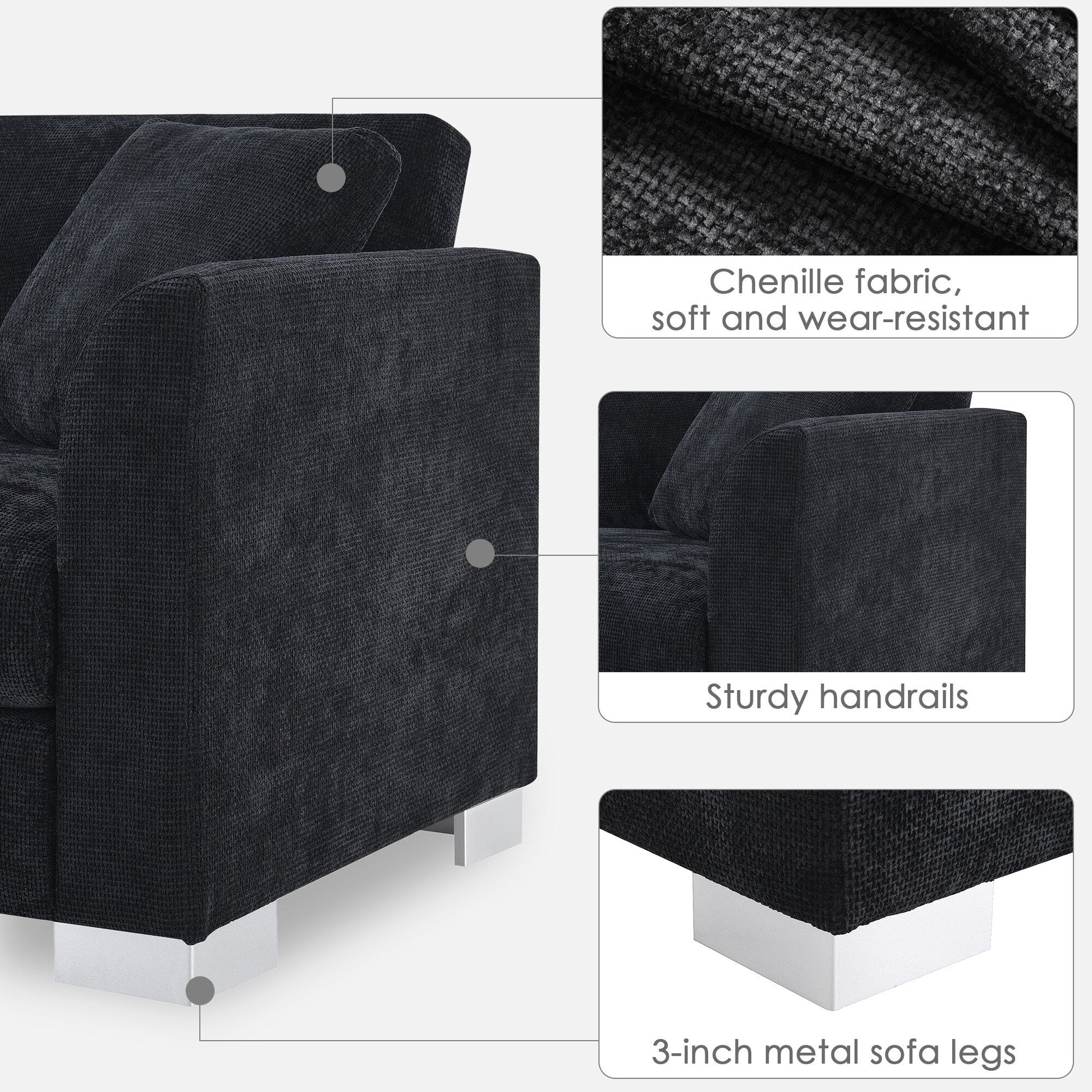 Comfortable Design: The sofa is made of high-quality chenille fabric, with a comfortable back and strong support cushion.Pocket spring filled cushions are supported by a spring pack structure that provides even support throughout the seating area.