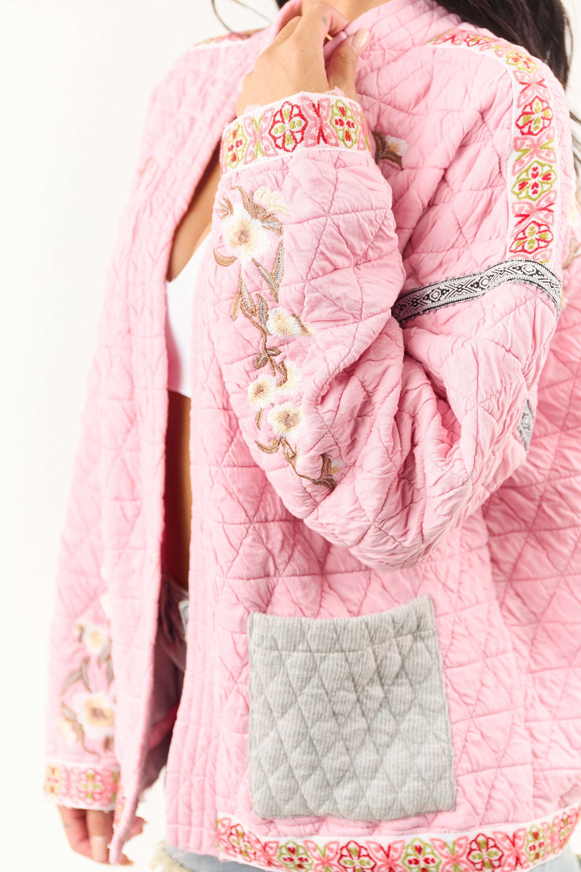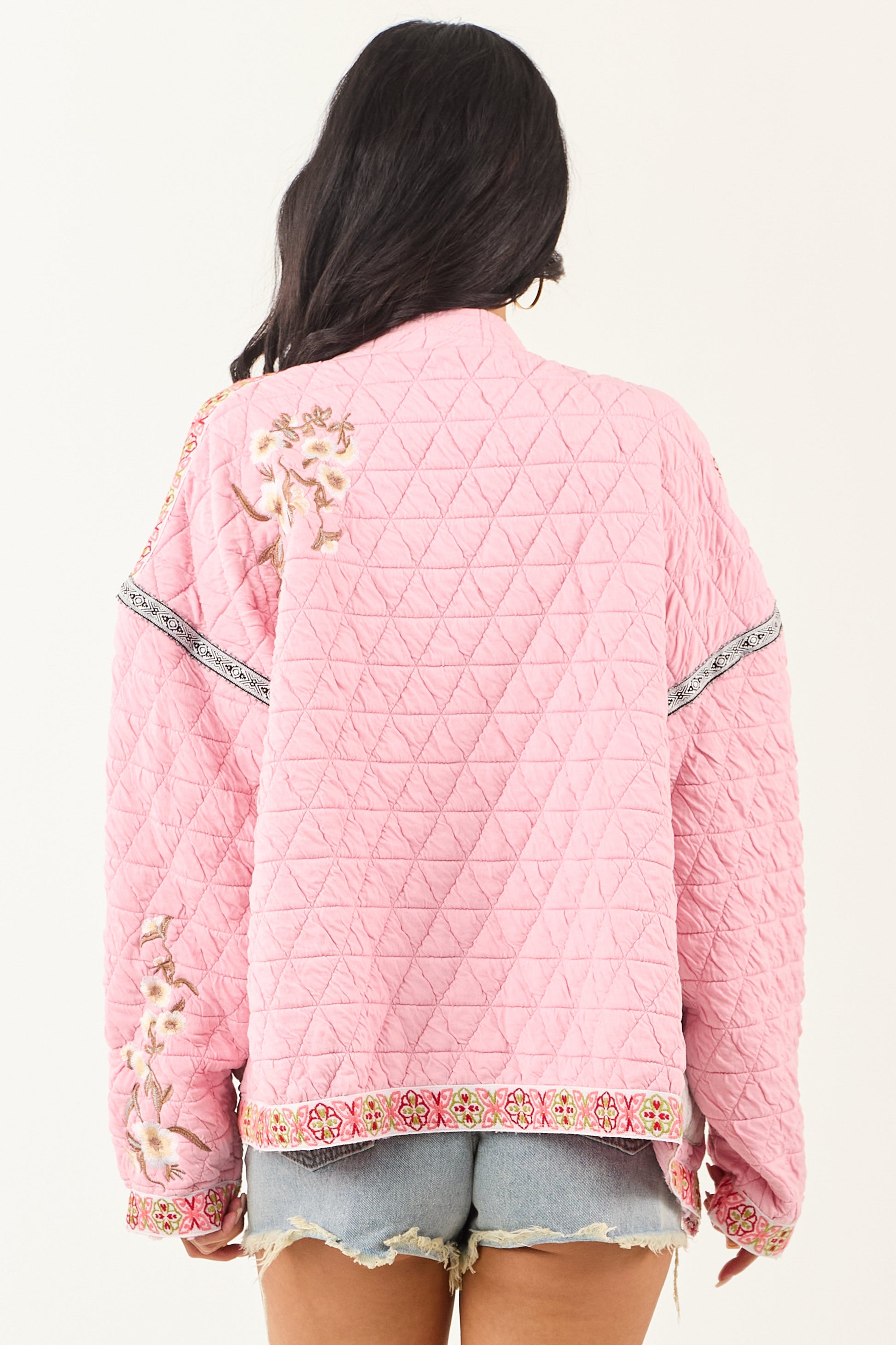 POL Baby Pink Floral Embroidered Open Front Jacket
