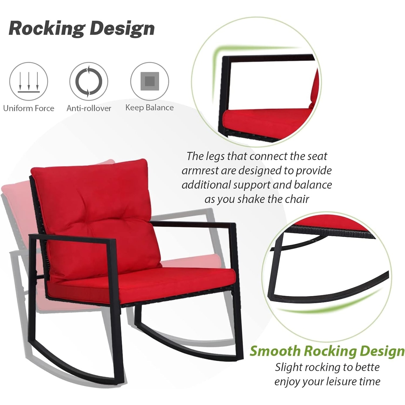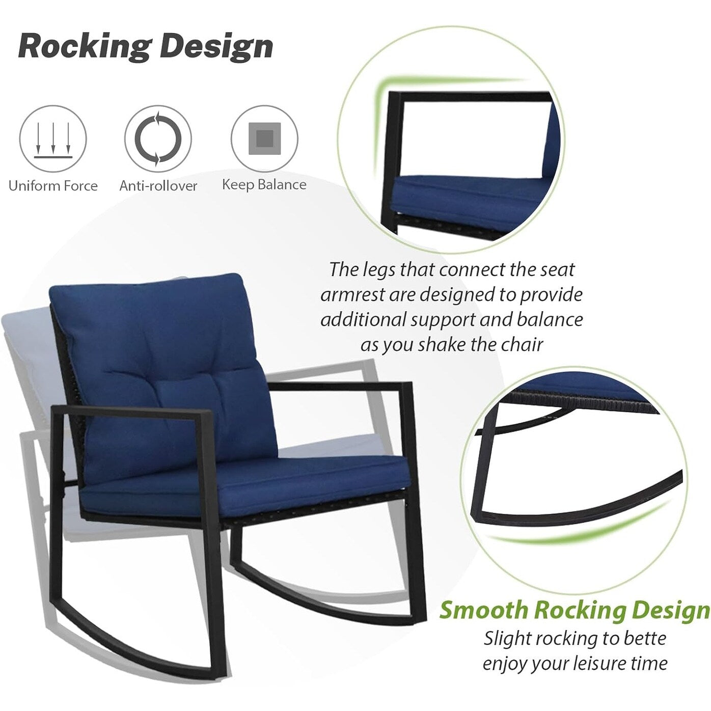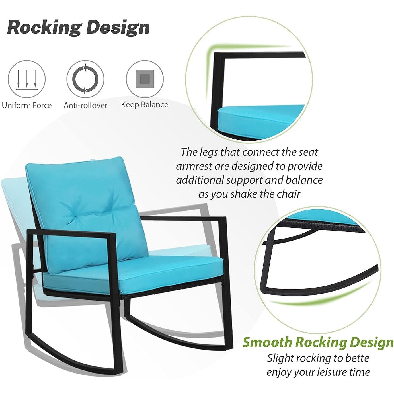 SUNCROWN 3-Piece Black Metal Outdoor Patio Rocking Bistro...