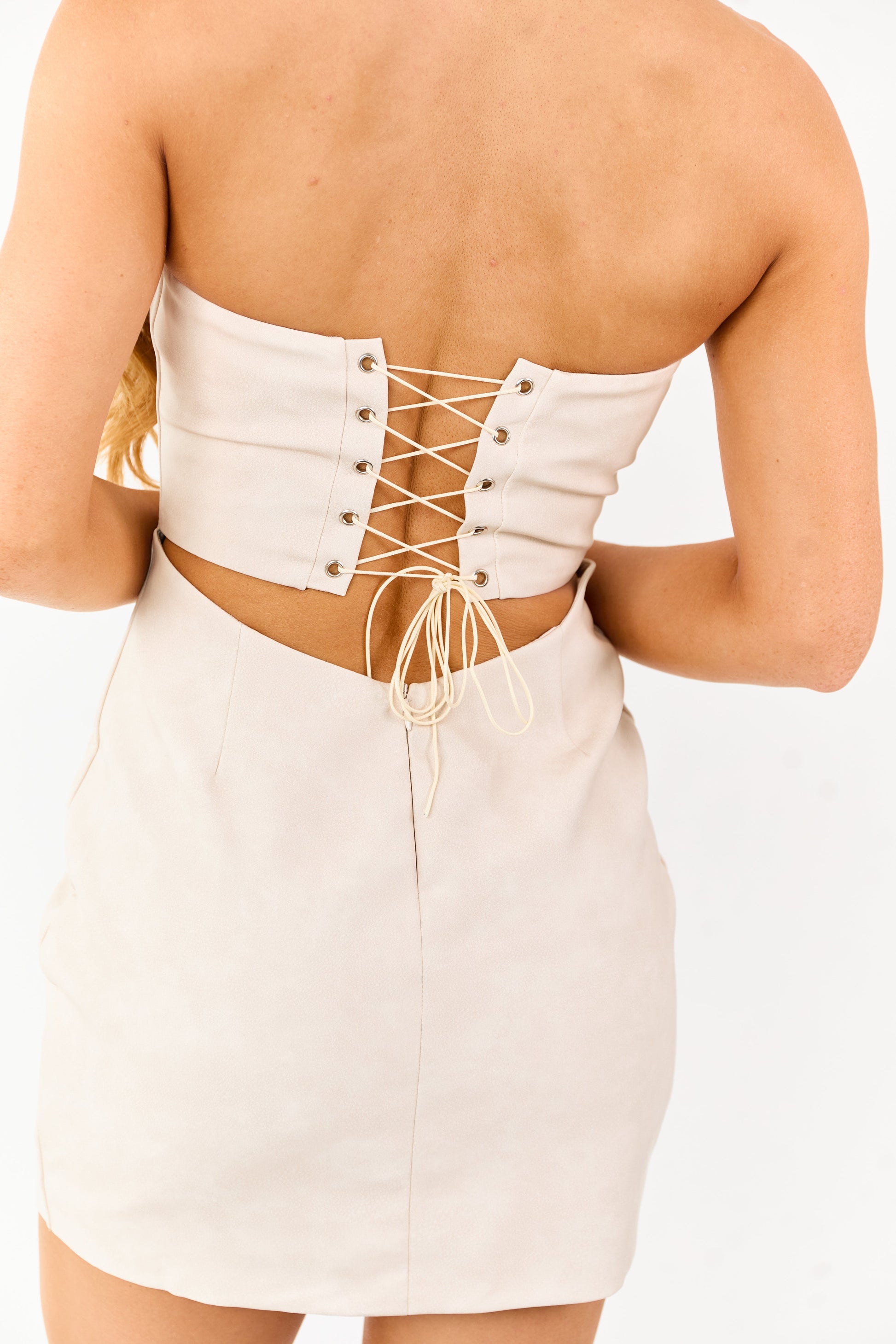 Vanilla Faux Leather Strapless Embroidered Mini Dress